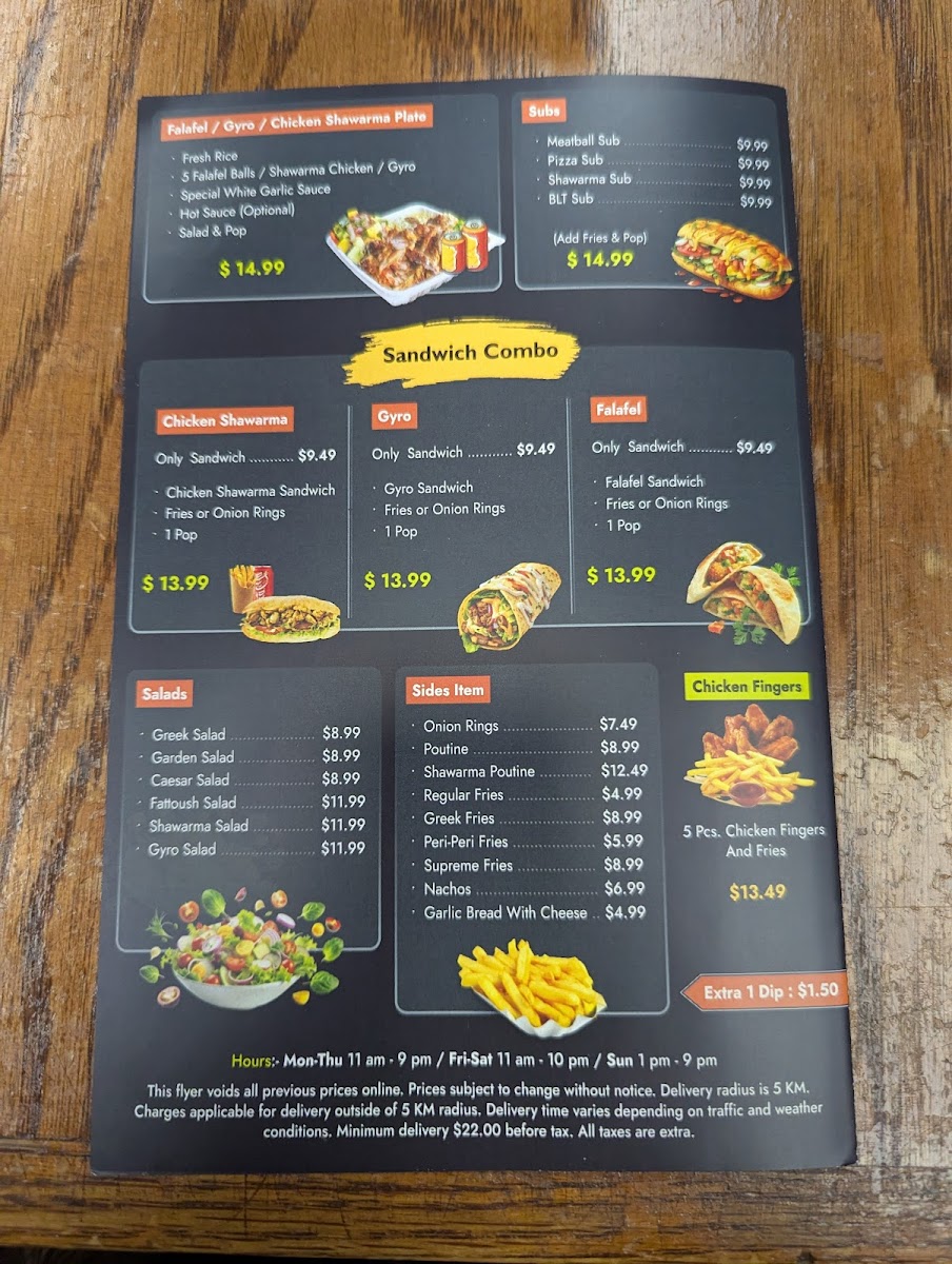 If you're in the mood for something different, don't miss out on The Attic's Falafel, Gyro, or Chicken Shawarma Plates—an explosion of taste that includes fresh rice, salad, and your choice of sauce for only CA$14.99. And for those craving a classic comfort food, their Chicken Fingers paired with crispy fries are a hearty option at just CA$13.49.